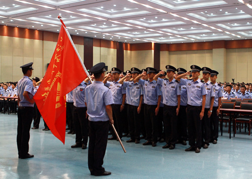 8月24日,所有参加执勤的700余名学生按时返校,集中3天时间进行公安业务知识培训。8月27日,学院组织召开了隆重的出征动员大会和授旗仪式,省司法厅党委委员、学院党委书记周祖勇亲自进行了动员,要求所有学生严格遵守执勤纪律,虚心学习,用自己的优异表现为学院增光添彩。学院院长黄兴瑞为出征队伍授旗。