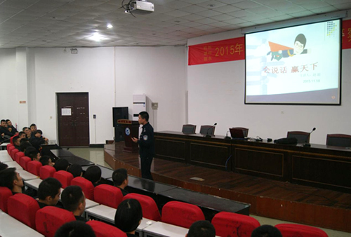 11月18日,刑事司法系学管队长赵超为该系2015级新生举办了一场生动有趣的始业教育专题讲座,讲座主题为“会说话,赢天下”。