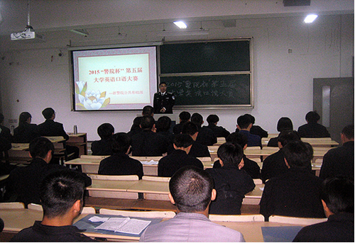 秀出水平,展现风采。11月22日上午8时,由公共基础部主办、外语教研室承办的第五届“警院杯”大学英语口语竞赛在D-309教室正式拉开帷幕。英语教研室老师担任评委,基础部主任祝成生作为嘉宾,与2015级各区队的学生一同参与了这项竞赛。