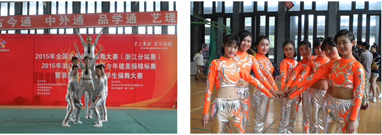 12月11日�13日,学院健美操队赴中国美院参加了2015年浙江省第二届大学生操舞大赛,荣获了全国全民健身操舞等级规定动作3级徒手特等奖(第一名)、2级徒手二等奖(第二名)的好成绩。 本次赛事由国家体育总局体操运动管理中心、中国健美操协会、浙江省教育厅、浙江省体育局主办,由浙江省大学生体育协会操舞分会、浙江省健美(操)协会协办,是我省大学生体育舞蹈比赛的最高赛事。 在汪盛坞教练的带领下,队员们利用空闲时间努力训练,经过5个星期的精心准备,队员进步显著并最终取得了好成绩。