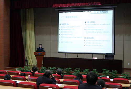 说课活动氛围热烈,老师们集“导”、“演”、“教”为一身,清晰的说课思路、严谨的教学设计和幽默风趣的语调,不时博得掌声。参赛教师有的擅长于从学情分析入手着重关注如何调动学生自主学习积极性来说课,有的着力从学生就业岗位入手进行课程分析,有的结合教学实验场所的变革来阐述自己对课程的理解,有的致力于运用现代信息手段对课程教学模式进行改革,有的突出了课程考核方式的创新……围绕着课程目标、定位、课程内容、教学方法手段、考核方式以及教学效果等课程改革实践,参赛教师阐述了他们先进的教学理念和教学方法,给大家展现了内涵丰富、层次多样的课程改革成果。
