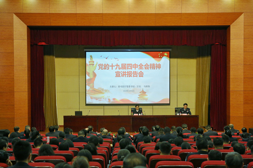 马柏伟紧紧围绕制度自信,结合司法行政工作,从四个方面系统介绍了党的十九届四中全会取得的重大成果,阐明了全会的重大意义,并从历史逻辑、理论逻辑和实践逻辑,以大量的数据和生动的事例,深入阐释了中国特色社会主义制度和国家治理体系的显著优势,围绕全会《决定》的总体要求、总体目标和重点任务,对推进法治政府建设等内容进行了系统阐述,并对学院学习宣传贯彻党的十九届四中全会精神和省委十四届六次全会精神提出明确要求。