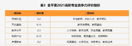 “金平果排行榜”(又称“中评榜”)由杭州电子科技大学中国科教评价研究院、浙江高等教育研究院、高教强省发展战略与评价研究中心、武汉大学中国科学评价研究中心联合中国科教评价网等机构联合研发,是业界眼中反映我国高职院校办学情况最权威、最全面、最专业的榜单之一。