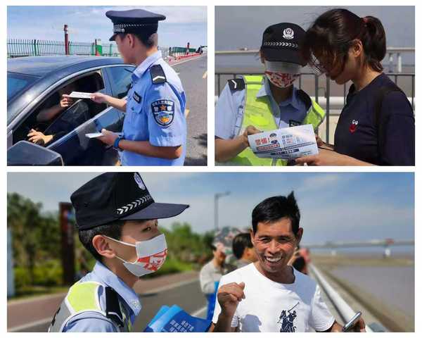 与此同时,同学们还配合派出所开展反诈宣传活动,通过播放反诈歌曲、会同公安分局无人机喊话、流动视频宣传车等方式不间断地向观潮群众普及反诈知识。提醒群众在安全观潮的同时,注意自身财产安全,防范诈骗。
