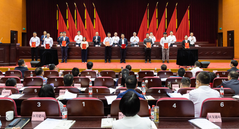 吴兴区“大综合一体化”行政执法改革“专家导师团”“媒体观察团”“市民监督团”部分代表受邀上台接受了聘书,学院教师应方淦、韩艳受聘专家导师团成员。