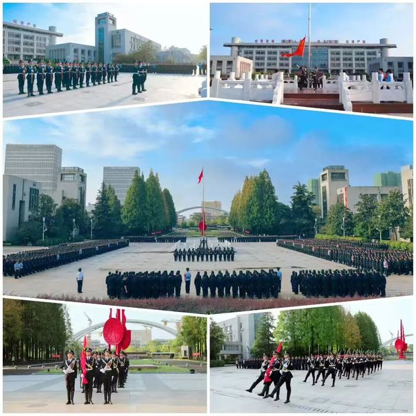 9月3日,中国人民抗日战争暨世界反法西斯战争胜利80周年纪念日。清晨6时50分,学院中心广场上,国旗护卫队步伐铿锵、仪容整肃,全体新生戎装肃立、目光如炬,在庄严的国歌声中,五星红旗冉冉升起。这一刻,历史与现实交汇,抗战精神与警院使命紧密相融。
