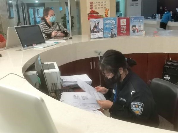 我院吴文烨在白杨派出所开展生态文明的宣讲,并给前来办事的人民群众发放宣传单。